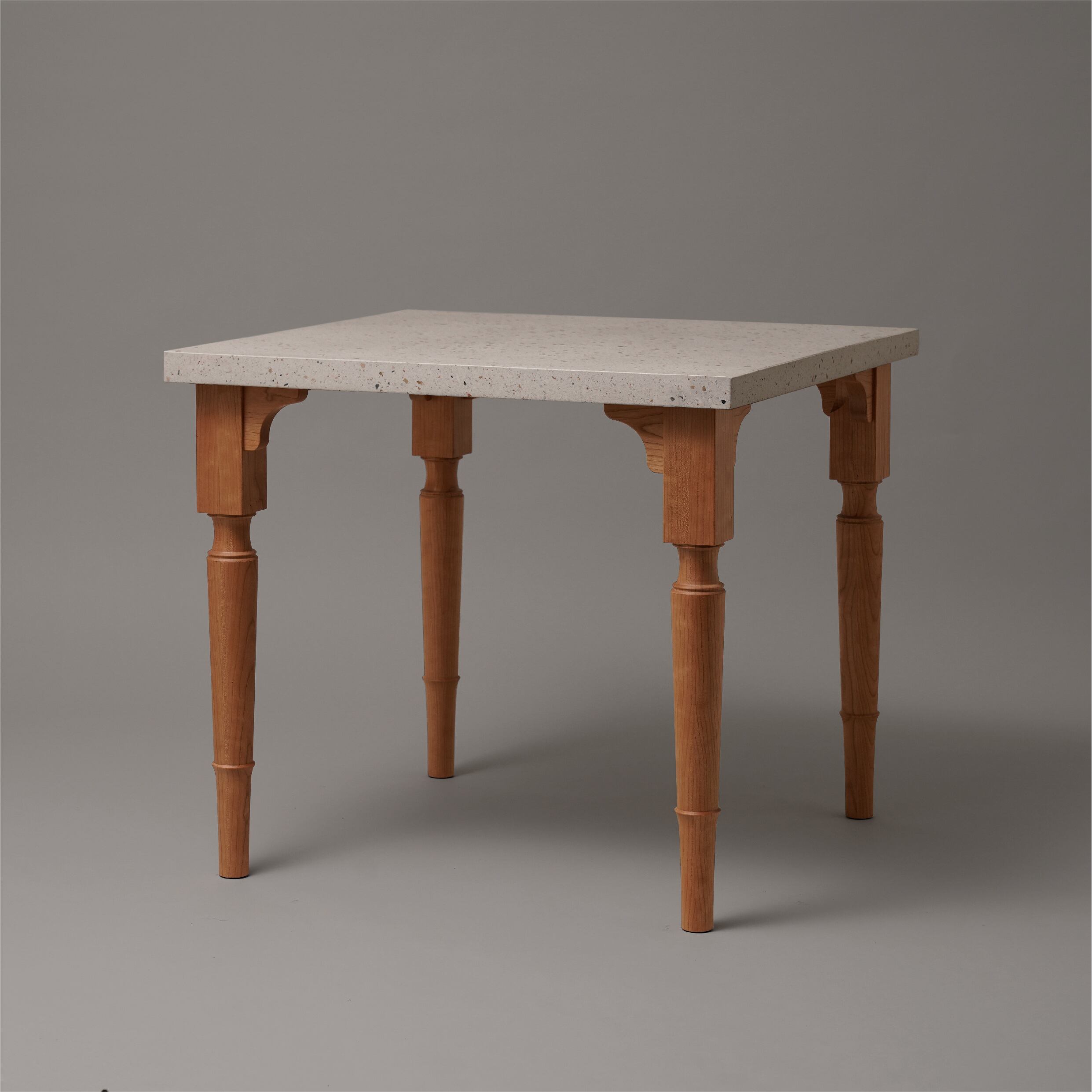 Table テラゾ アイボリー 正方形 [セミオーダー]W600〜900×D600〜900mm ろくろ脚 チェリー